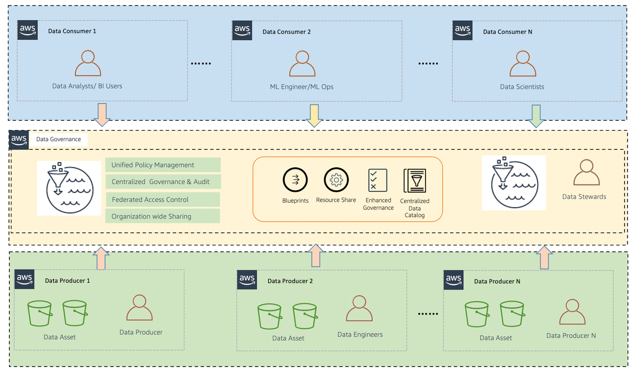 The DLAs are the guardians of the governance model, being the only principals initially authorized to issue or manage permissions using the Lake Formation GRANT/REVOKE model.